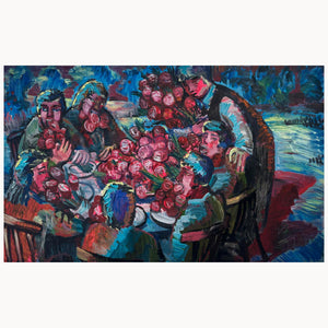 In „The Rose Eaters“ werden Rosen verschlungen. Blumen, die wir sonst verschenken, um Liebe zu zeigen, werden hier gefressen. Sukhov entwickelte das Werk in Anlehnung an van Goghs „Potato Eaters“. Statt Hunger nach Nahrung, haben die rose eaters Hunger nach Zuneigung.
