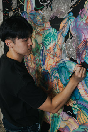 June (Hwajung Kim), né en 1991 en Corée du Sud, étudie actuellement à l'Académie des Beaux-Arts de Vienne, dans la classe de Daniel Richter. Son travail est profondément marqué par son identité d'homme asiatique, non anglophone et queer, évoluant au sein de la culture européenne. À travers la performance, l'installation et la peinture, June explore la complexité de la dualité humaine et examine comment le désir et les émotions se manifestent dans l'intimité.